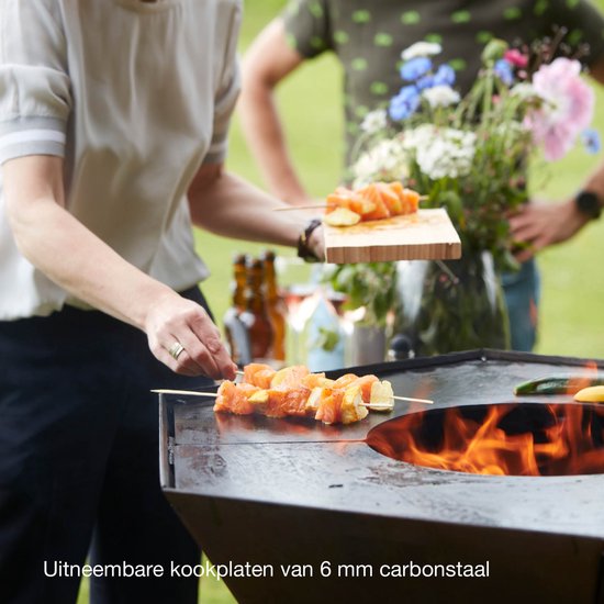 - 2 uitneembare kookplaten van 6 mm carbonstaal.