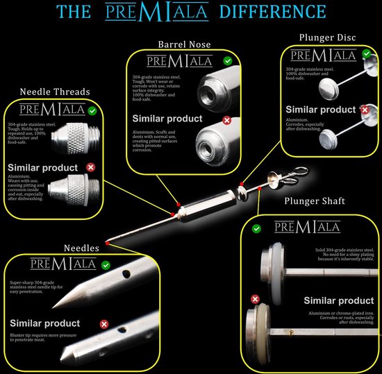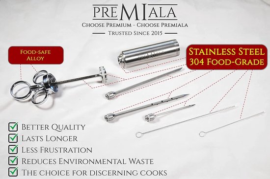 De enige marinadespuit in Roestvrij staal 304 voor alle bestellingen die eten aanraken +3 naalden +5 reserve O-ringen +e-book! 60 ml 2 oz professionele marinadespuit voor…