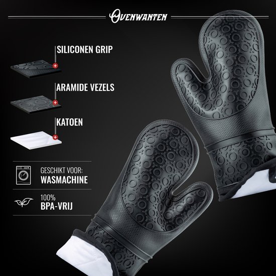 Specificaties: Mountain Jack 2 Stuks Antislip BBQ & Oven Veiligheid Handschoenen – Ovenwanten – Hittebestendige Dubbele Voering – Zwart